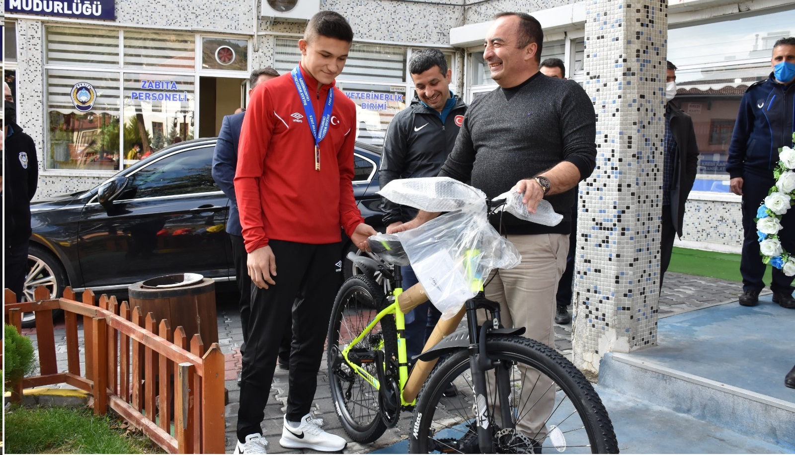 Başkan Ali Sülük, “ Ülkemizi ve ilçemizi Balkan Şampiyonasında temsil eden Milli Sporcumuz Mürsel Aslanı, ailesini ve hocasını canı gönülden tebrik ederim. Çalışmalarımızın neticelerini görmek bizleri onurlandırdı. Belediye olarak; spora ve sporcuya olan desteğimiz her türlü sosyal aktivitelerde olmak üzere devam edecektir. Yeter ki temiz ve ahlaklı bir nesil yetişsin. Şampiyonumuza güzel günlerde kullanması için bisiklet hediye ettik. Güle güle kullan paşam” dedi.