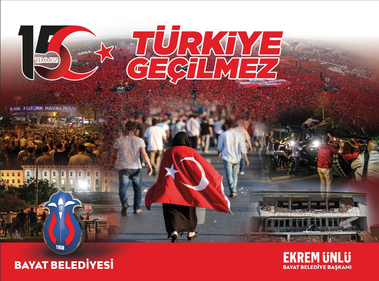 BAYAT BELEDİYE BAŞKANI ÜNLÜ'NÜN 15 TEMMUZ MESAJI GÜNDEM 14 Temmuz 2021 - 14:52 0 Bayat Belediye Başkanı Ekrem Ünlü'nün 15 Temmuz mesajı