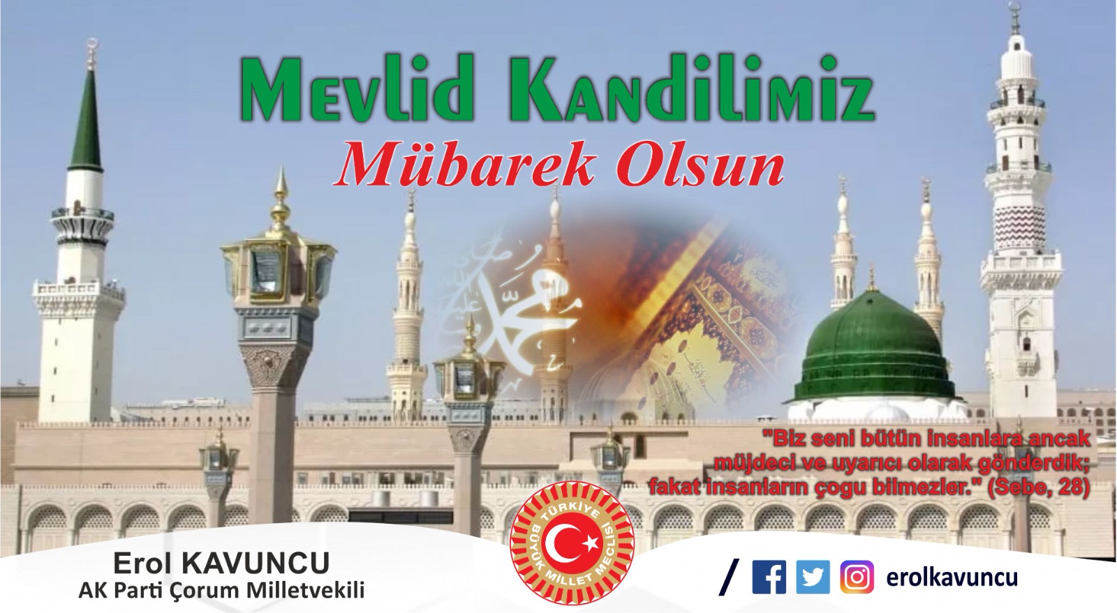Ak Parti Çorum Milletvekili Erol Kavuncu; "Mevlid Kandilimiz Mübarek Olsun"