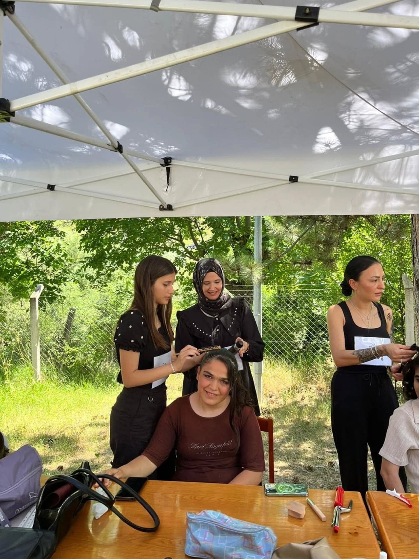 Etkinlik kapsam?nda, Mesleki E?itim Merkezi'nde görevli Usta Ö?retici Saç Bak?m ve Güzellik Bölümü Ö?retmeni Merve Küyük ve yard?mc?lar? Bilge A?z?kara, Beyza Nur Kopuk, Duygu Demir, Feride Eflin A?z?kara taraf?ndan özel bireylerin saç kesimi ve bak?m? yap?ld?.