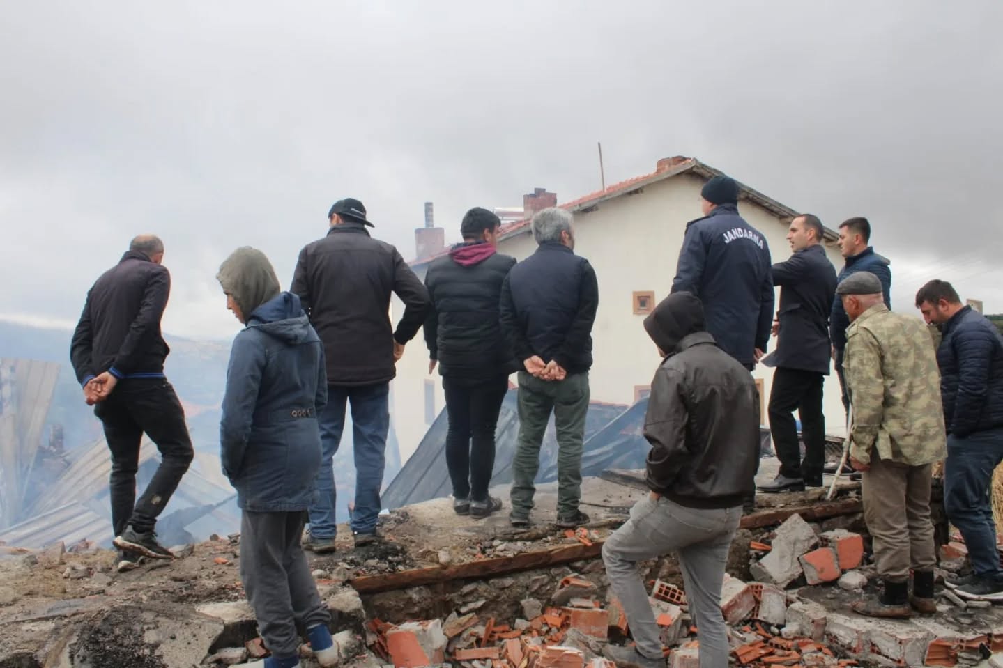 Evleri yanan İsmet Çördük, Ali Çördük ve Ahmet Çördük'e geçmiş olsun dileklerini ileten Kaymakam Polat, yangın yerinde incelemelerde bulundu.