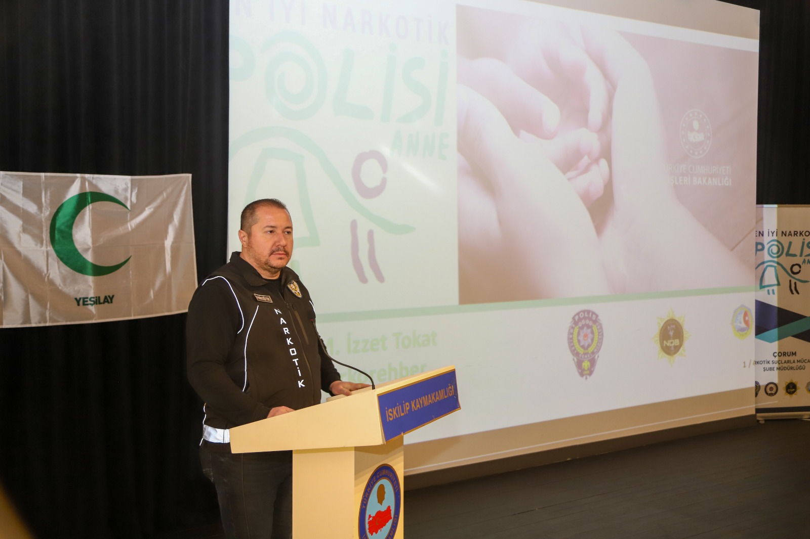 Kadınlara yönelik konferansta konuşan Çorum narkotik şubeden polis memuru İzzet Tokat yaptığı bilgilendirme konuşmasında uyuşturucu kullanımının başlangıcı ve bağımlılık yapıcı etkisi sunum eşliğinde detaylı bilgiler aktardı. Tokat; “ Hiçbir aile çocuğuna uyuşturucu bağımlılığını yakıştıramaz. Ailelerin ve toplumun bilinçlendirilmesi ile bu kanayan yaranın önüne geçilebilecek” dedi. Uyuşturucu kullanımın erken fark edilmesinin önemine işaret eden İzzet Tokat maddenin bulunamaması halinde yoksunluk belirtilerinin geliştiğini ve bu belirtilerin neler olduğu, maddenin şekli ve etkisi konusunda da konusunda da bilinçlendirmede bulunarak ailelerin dikkat etmesi gereken hususları aktardı.