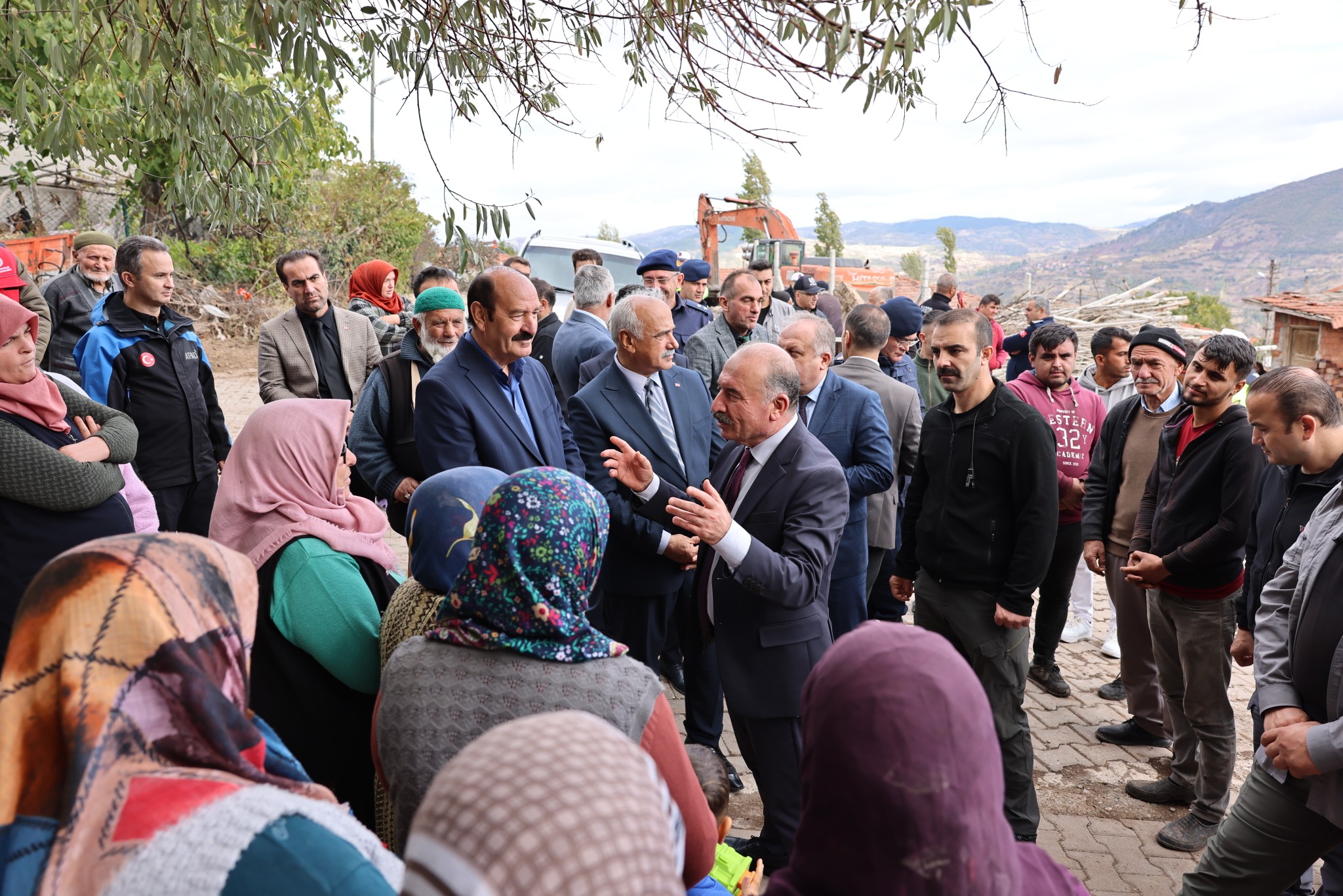 Yangından etkilenen ailelerle ve mahalle muhtarıyla görüşerek yangın hakkında bilgi alan Vali Çalgan, köylülere geçmiş olsun dileklerini iletti.