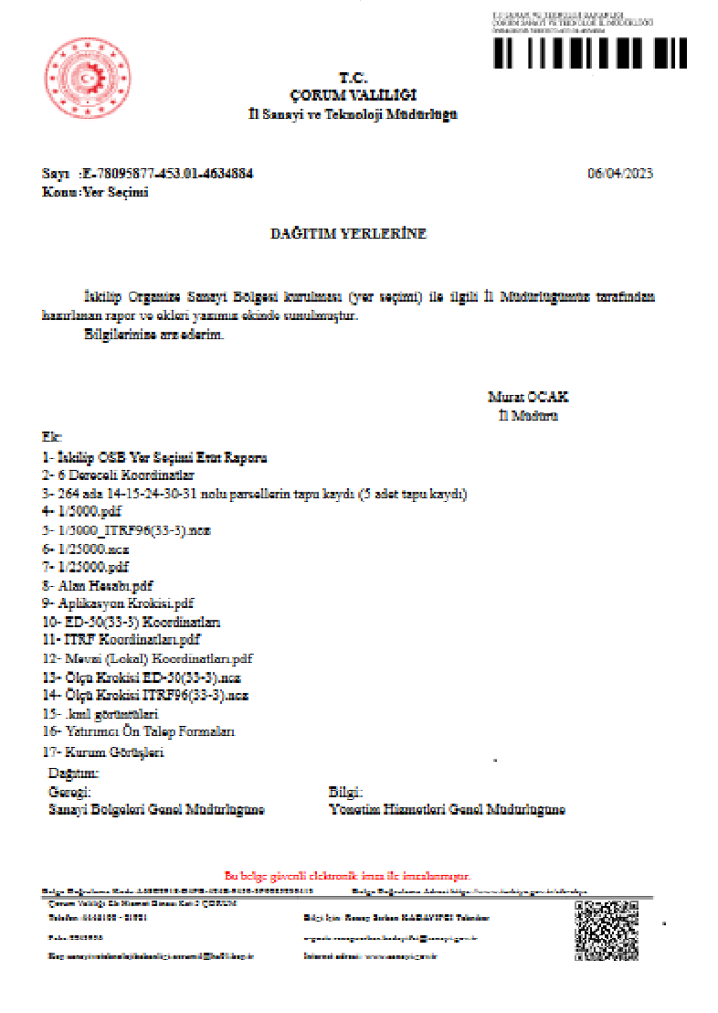 Sanayi ve Teknoloji Bakanlığı'nın OSB ile ilgili olumlu görüşünden sonra Çorum Valiliği'nin taşra teşkilatlarından istediği olumlu görüşler bakanlığa gönderildi. Yeni süreçte Sanayi ve Teknoloji Bakanlığı uzmanları ile birlikte ilgili Bakanlık uzmanları 15 gün içerisinde İskilip'e gelerek arazi keşfi yapacak.