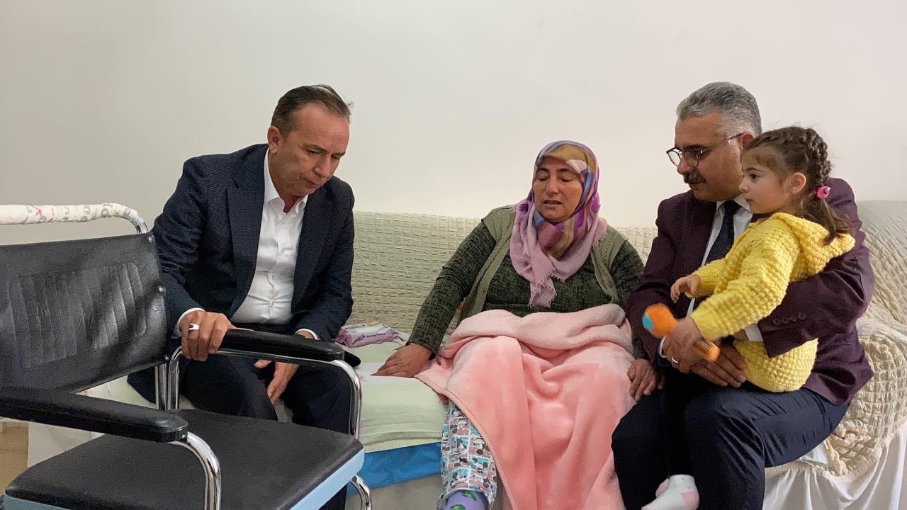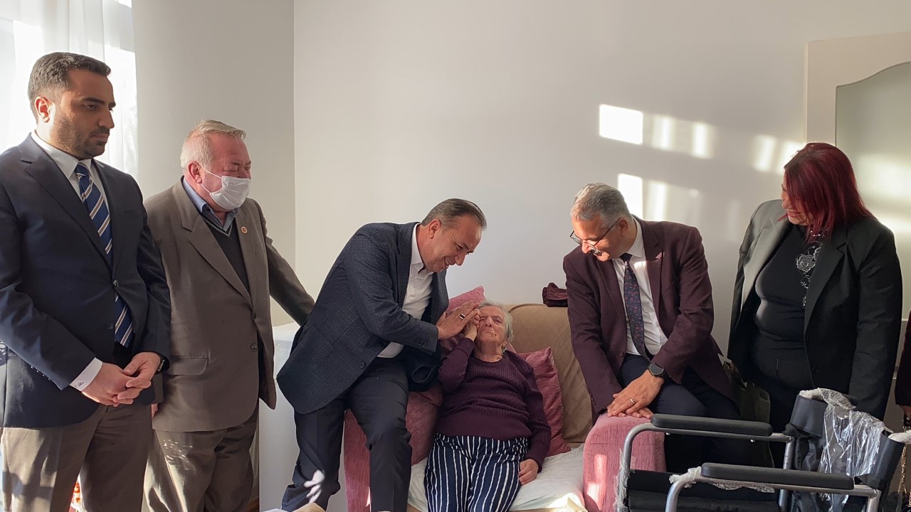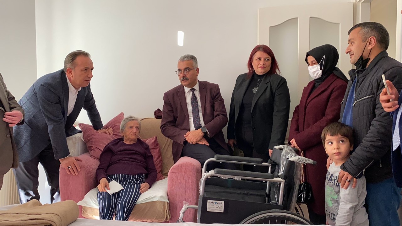 Ceylan ve Ahlatcı’nın ikinci durağı ise, Bahçelievler Mahallesi’nde ikamet eden Hatice Uçar oldu. Bahçelievler Mahallesi Muhtarı Hasan Kızıltepe ile birlikte Hatice Uçar’ı da evinde ziyaret eden Ceylan ve Ahlatcı, tekerlekli sandalye teslim ederek hayır duasını aldılar.