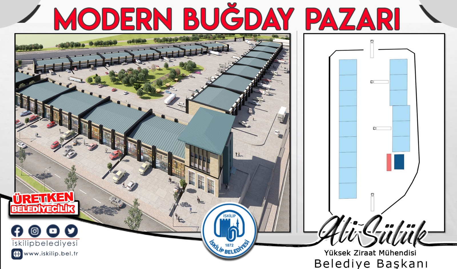 İlçemizin bir hayalini daha gerçekleştirmek adına, şu anki buğday pazarının hem şehrin içinde olması, hem de üniversite kampüsü içerisinde kalması sebebiyle Belediyemiz mülkiyetine ait arazide modern buğday pazarı kurulması için çalışmalarımızı aralıksız devam ettiriyoruz” dedi.