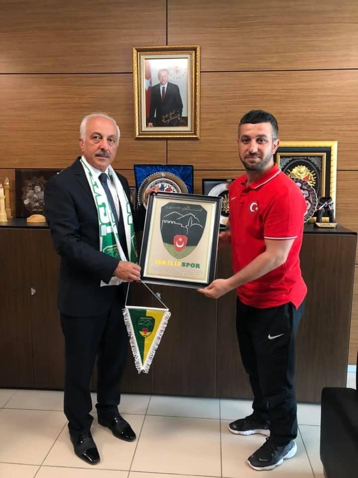 İskilip Belediyespor’un başarılı güreş antrenörü Adem Uysal önceki dönem Çorum Belediye Başkanı, Çevre ve Şehircilik Bakanı bakan danışmanı Zeki Gül’ü şampiyon güreşçileri ile beraber ziyaret ederek kulüp atkısı ile kulüp flaması hediye etti.