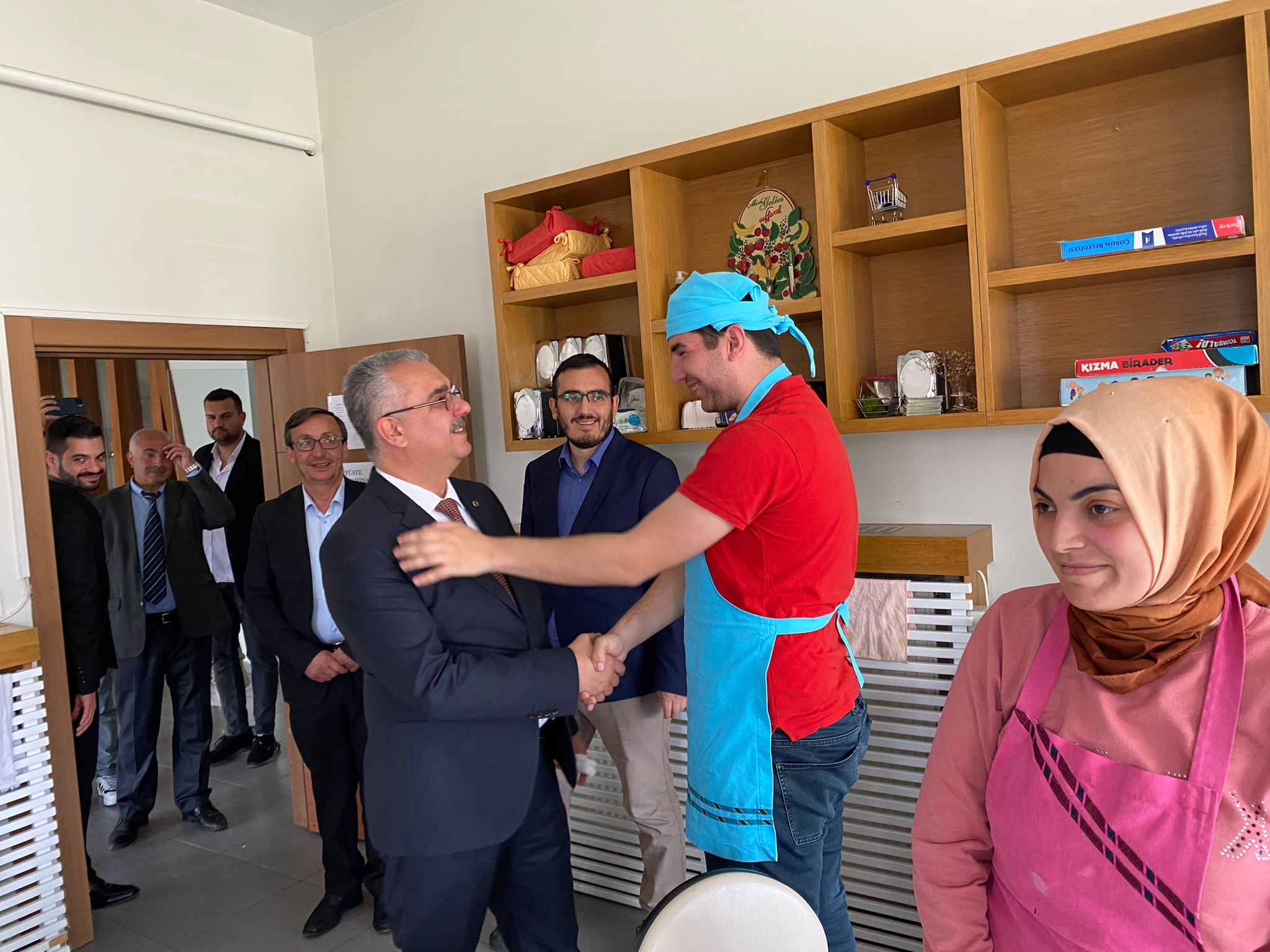 Çorum Belediyesi Özel Rehabilitasyon Merkezi'ndeki Çini Atölyesi, Müzik Odası, Nakış Atölyesi, Spor Salonu, Bilgisayar Odasını gezerek, çocuklar ve gençlerle sohbet etti.