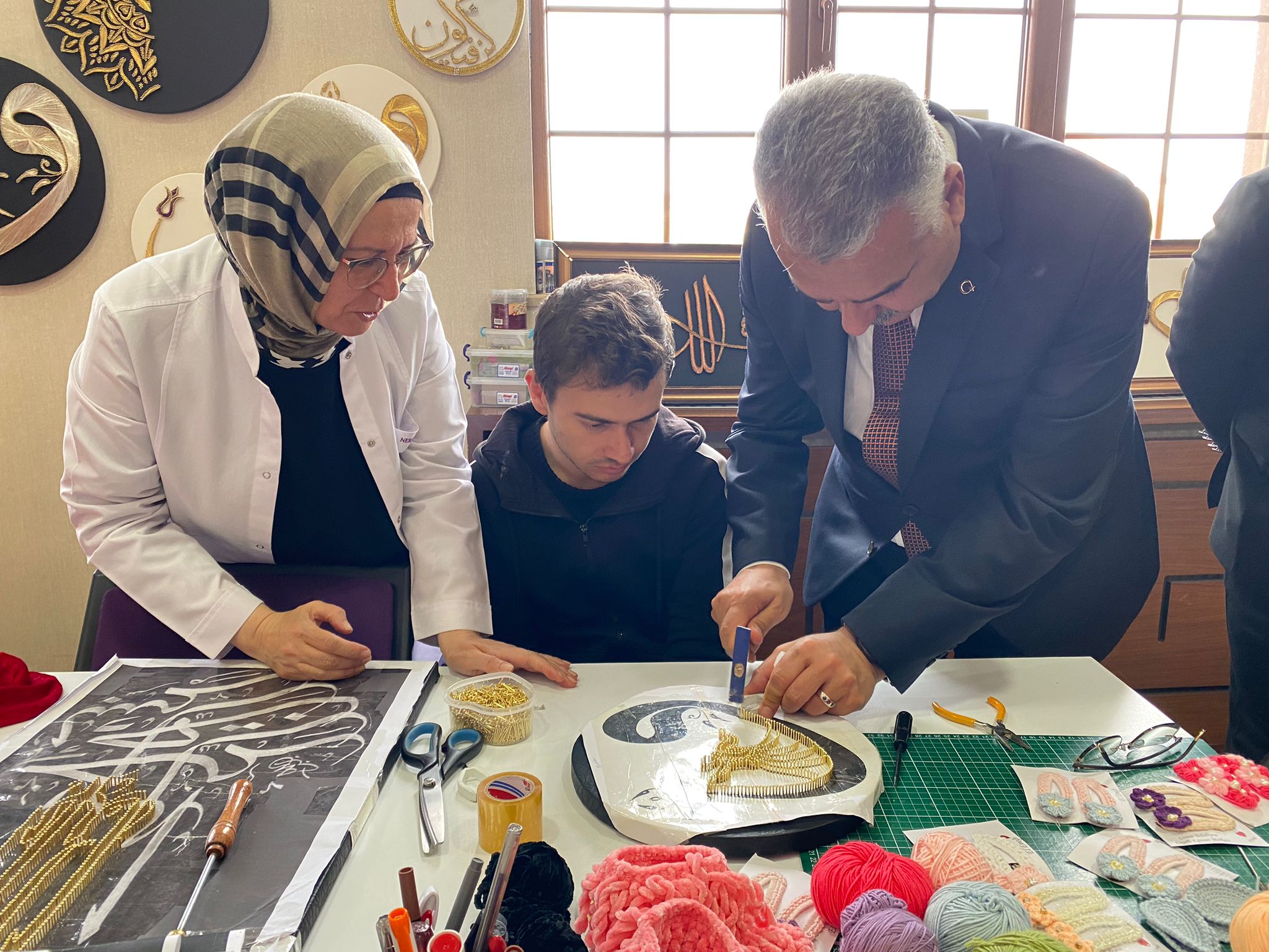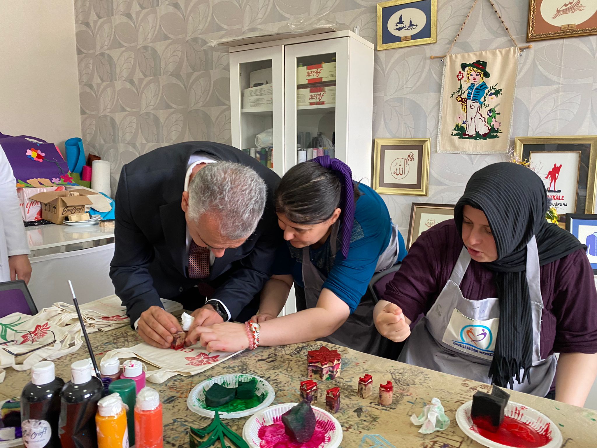 Ahlatcı, daha sonra, atölyelerde öÄŸretmenler nezaretinde hediyelik eÅŸya üretimi yapan deÄŸiÅŸik öÄŸrencilerle birlikte çalışma yaptı.