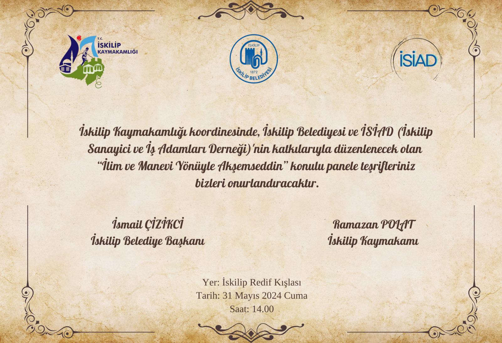 Program, 31 Mayıs Cuma namazı öncesi İskilip Ulu Cami'de Mevlid-i Şerif okunmasıyla başlayacak. Buradan Mehteran eşliğinde devam edecek yürüyüşün ardından Tarihi Redif Kışlası'nda panelle devam edecek. Panele katılan konuşmacılar Akşemseddin Hazretlerinin manevi yönünü farklı bir bakış açısı ile değerlendirilecekler.Programa tüm İskilip halkı davet edildi.