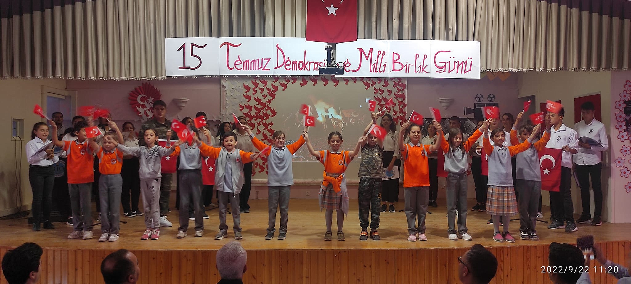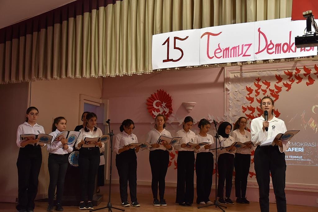 15 Temmuz Programı saygı duruşu ve İstiklal Marşı'nın okunmasıyla başladı. Azmimilli Ortaokulu Müdürü Sadık Ekşi günün anlam ve önemine yönelik yaptığı konuşmada;