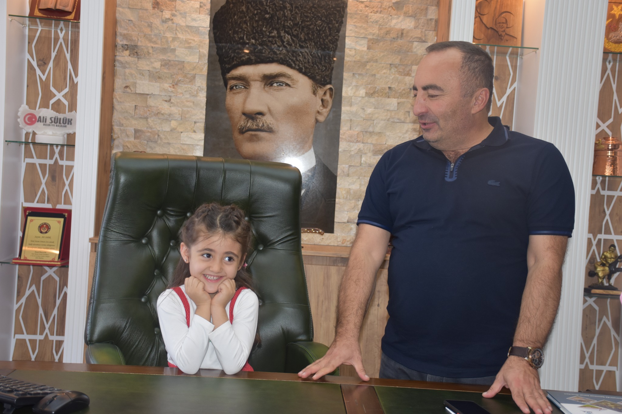 İskilip Anaokulu Müdürü Rümeysa Düşün, öğretmenler ve öğrenciler İskilip Belediye Başkanı Ali Sülük’ü makamında ziyaret ettiler. Bir süre Başkanlık makamına oturan öğrenciler dilek ve temennilerini dile getirdiler.