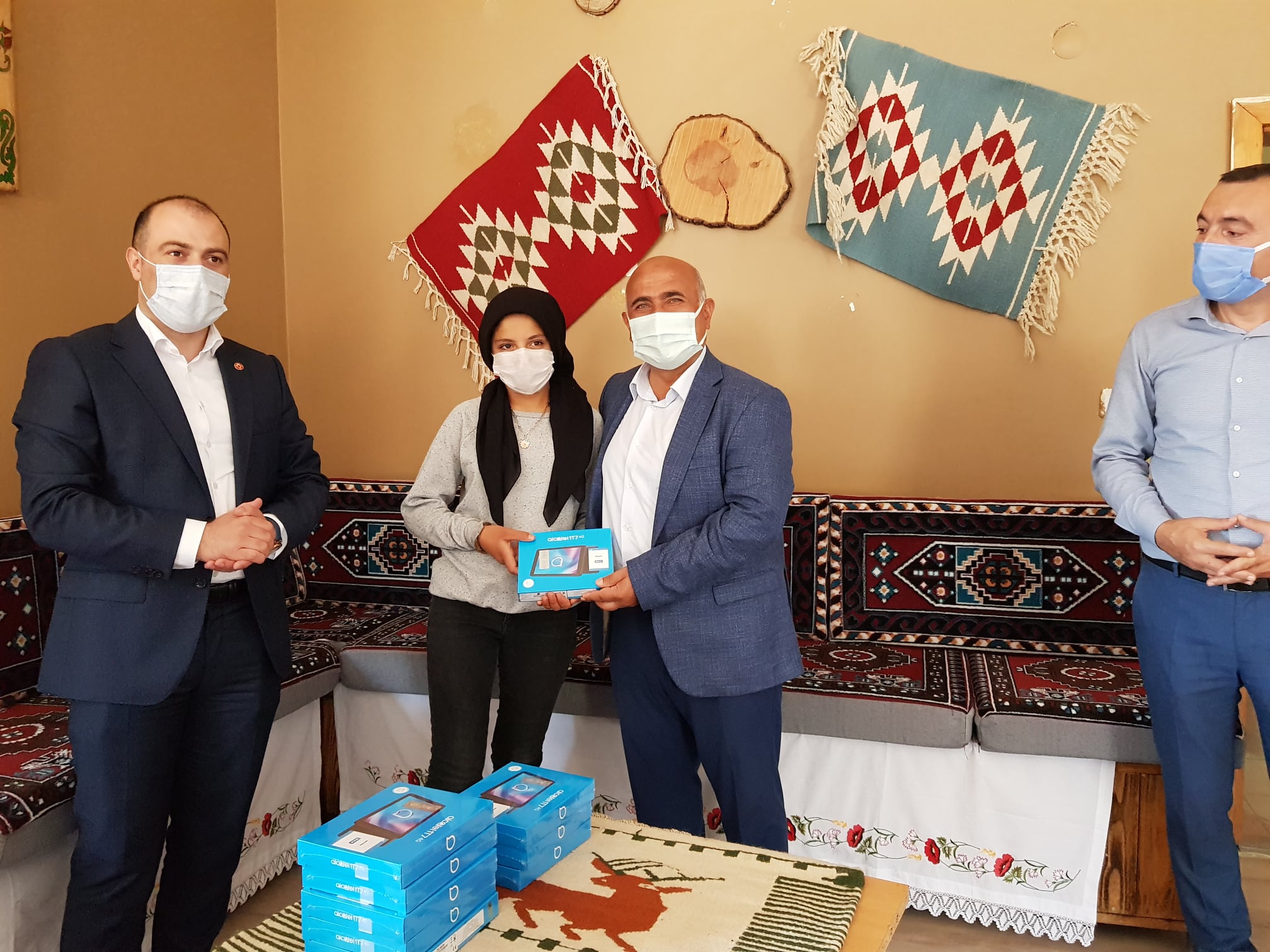 Bayat Belediyesi, engelli öğrencileri de unutmadı. Engelli öğrencilere tablet hediye edildi.