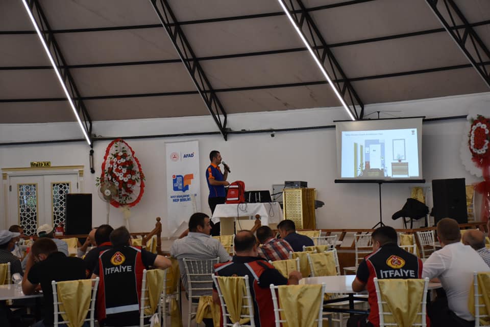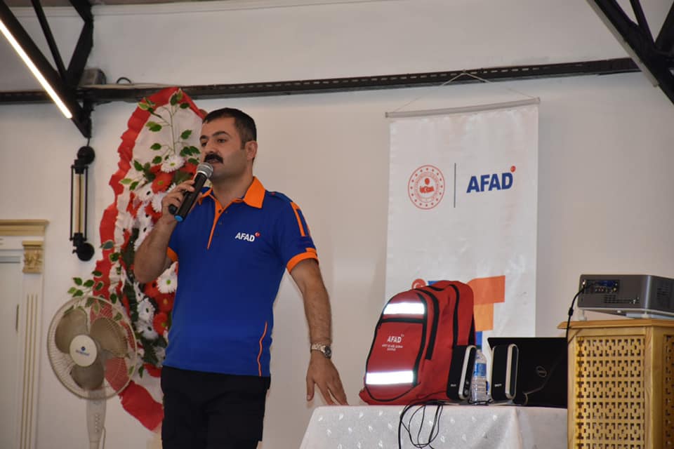AFAD yetkilileri tarafından verilen eğitimde olası bir afet durumunda alınacak tedbirler ve müdahaleler hakkında bilgilendirmelerde bulunuldu.
