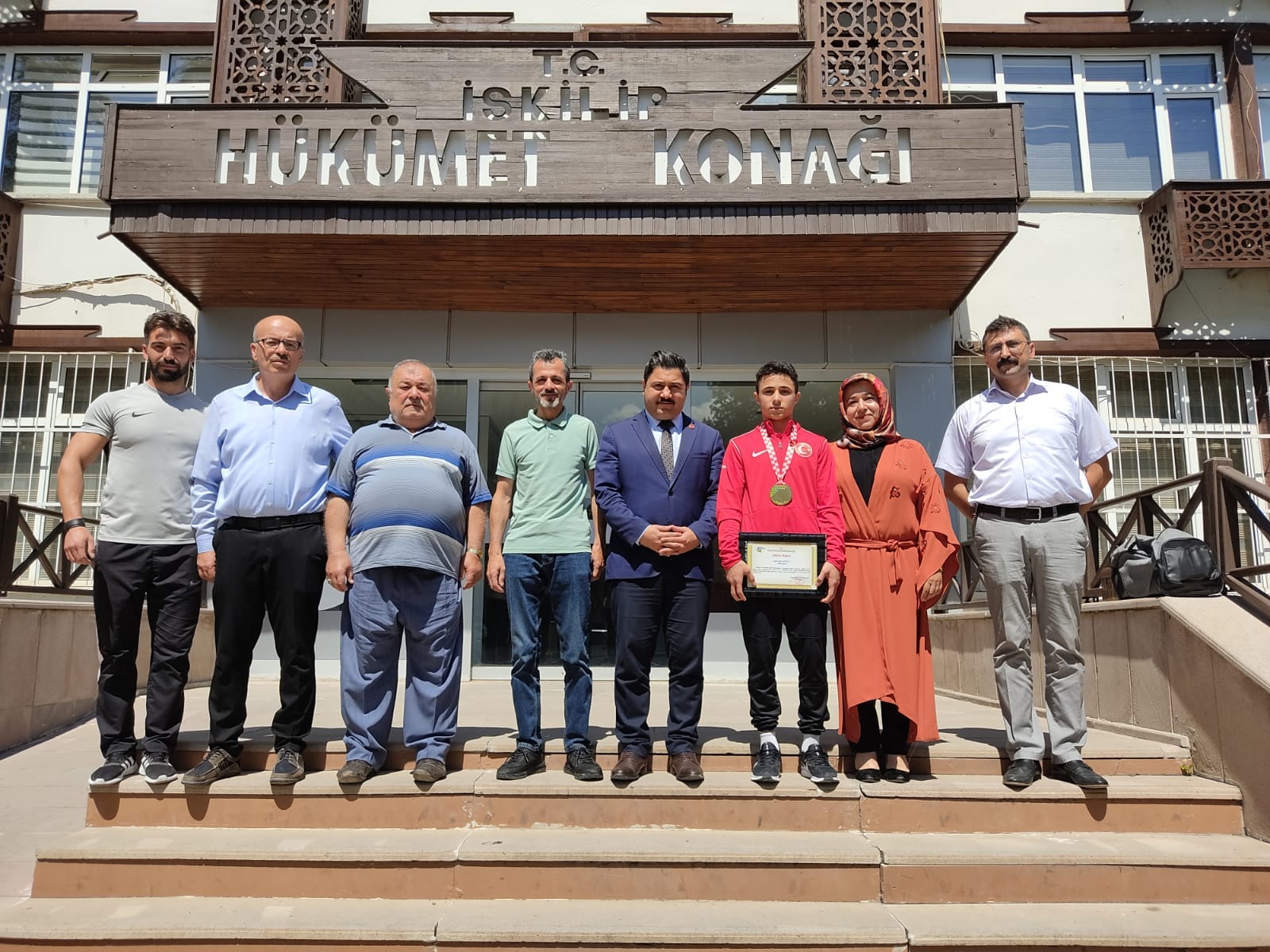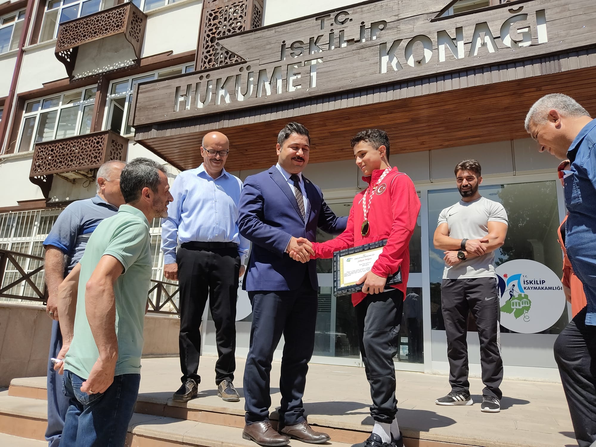 Şampiyon güreşçimiz Enes Kavlu’yu maddi ve manevi olarak ödüllendiren Kaymakam Yunus Emre Bozkurtoğlu güreşçimize başarılarının devamını diledi.