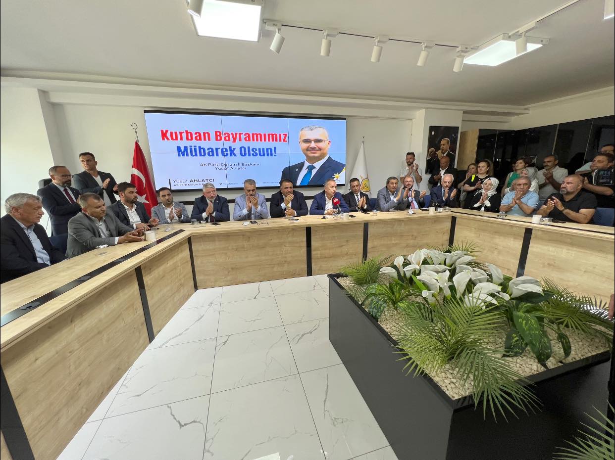 AK Parti Çorum İl Başkanlığı binasında yapılan bayramlaşma programına “İl Başkanı Yusuf Ahlatcı, Milletvekili Oğuzhan Kaya, Milli Savunma Bakan Yardımcısı Muhsin Dere, geçmiş dönem Milletvekilleri Murat Yıldırım, Ahmet Aydoğmuş, Çorum İl Belediye Başkanı Halil İbrahim Aşgın, İl Genel Meclis Başkanı Mehmet Bektaş, Çevre Şehircilik ve İklim Değişikliği Bakan Müşaviri Zeki Gül, Merkez İlçe Başkanı Erhan Akar, İl Kadın Kolları Başkanı Meryem Demir, İl Gençlik Kolları Başkanı Muhammed Fatih Temur, AK Parti İlçe Başkanları, AK Parti Belediye Başkanları ve partililer katıldı.