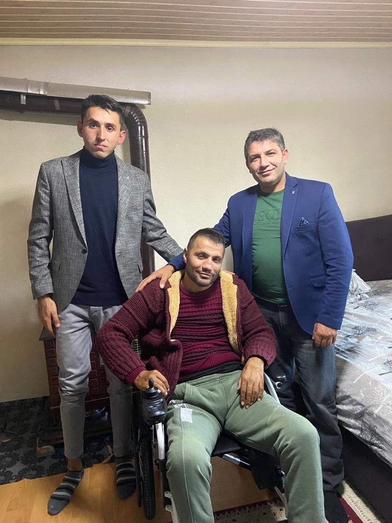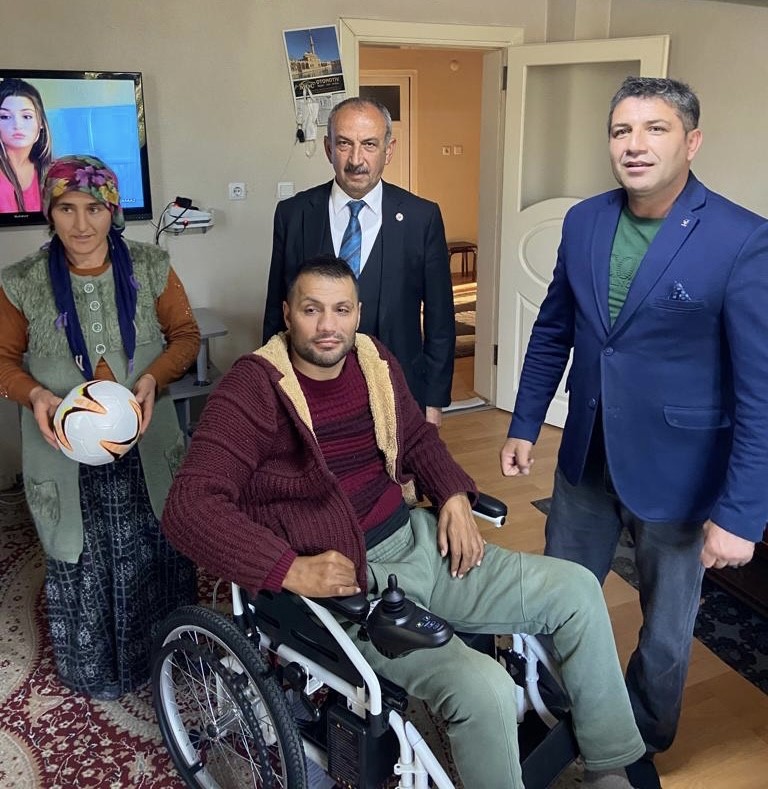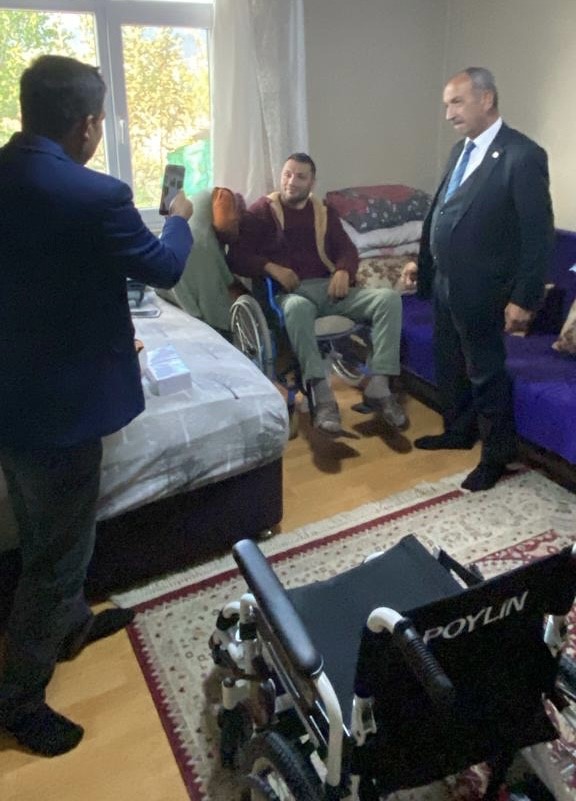 Aşdağul Belde Belediye Başkanı Mehmet Çelik ve AK Parti Aşdağul İlçe Gençlik Kolları Başkanı Eray Çelik, Aşdağul’da yaşayan İhsani Celep ve eşi Hatice Celep’i ziyaret ederek akülü sandalyeyi teslim etti.