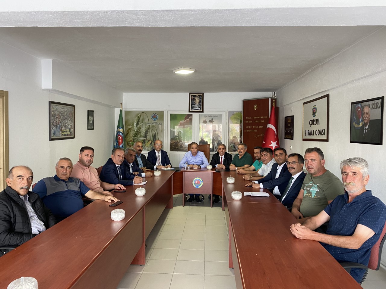 Çorum Ziraat Odası Başkanı Mehmet Sayan’ın evsahipliğini yaptığı toplantıya İl Genel Meclis Başkanı Mehmet Bektaş, Tarım Kredi Bölge Müdürü Veysel Tolga Atik, Tarım İl Müdürü Orhan Sarı, Dodurga Ziraat Odası Başkanı Yılmaz Göker, Ortaköy Ziraat Odası Başkanı Ramazan Topçu, Mecitözü Ziraat Odası Başkanı Satılmış Köse, Laçin Ziraat Odası Başkanı Duran Çardaklı, Sungurlu Ziraat Odası Başkanı Ramazan Kelepircioğlu, Bayat Ziraat Odası Başkanı Murat Yıldırım, Uğurludağ Ziraat Odası Başkanı Davut Saygı ve Karadeniz Birliği Başkanı Ali Bardakçı katıldı.
