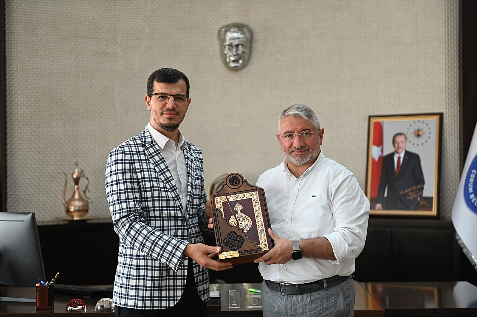 İlçe Müftümüz Sn. Vahit Demiral, Kur'an Kursumuza yapmış olduğu desteklerden ötürü, Şube Müdürümüz Hasan Gökce ve Ebussuud Efendi Erkek Kur'an Kursu Müdürümüz Ali Ercan ile birlikte Çorum Belediye Başkanı Sn. Dr. Halil İbrahim Aşgın'a teşekkür ziyaretinde bulundu. Hocamız, gerek kursumuzun peyzaj çalışmaları hususunda gerek hafızlarımızın sosyal etkinlikleri hususunda vermiş oldukları destekten ötürü Sn. Aşgın'a teşekkür etti” denildi.