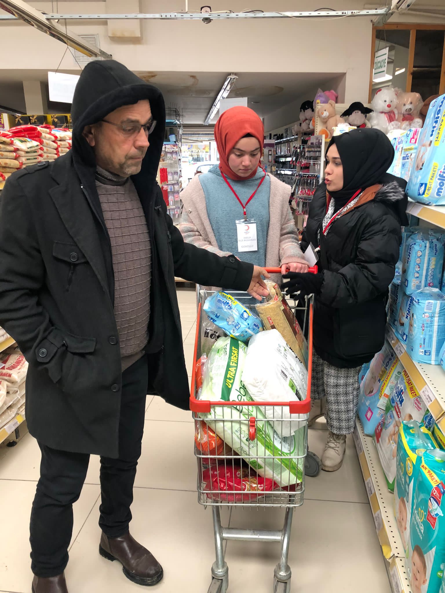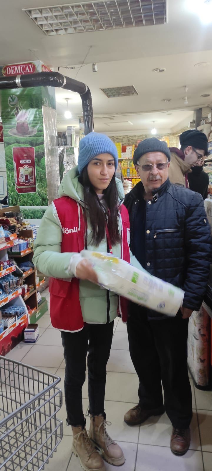 Bizlere bu zor zamanlarda maddi anlamda destek olan ilçe esnaflarımıza, hayırseverlerimize ve soğuğa aldırış etmeden özveriyle çalışan genç kardeşlerimize teşekkür ederiz’ dedi.