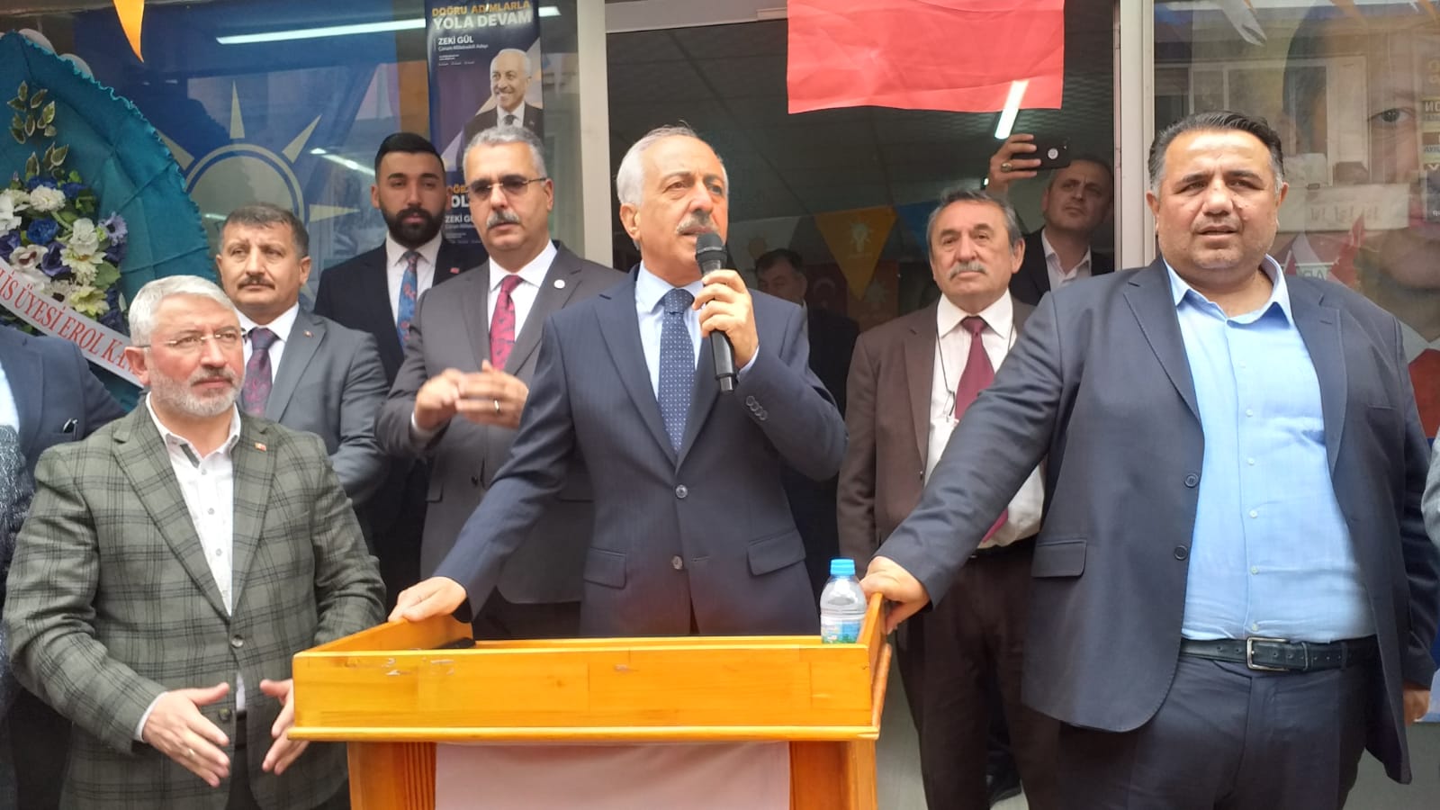 Açılışta konuşan Zeki Gül bu seçimin varoluş ya da yok oluş seçimi olduğunu söyledi. Gül; “Buna siz karar vereceksiniz, biz sizin sıkıntılarınızı, dertlerinizi çok iyi biliyoruz. Ya askerimize kurşun sıkanların yanında yer alacağız ya da bu davanın zirvede devamı için Cumhurbaşkanımız ve yol arkadaşlarının yanında olacağız.