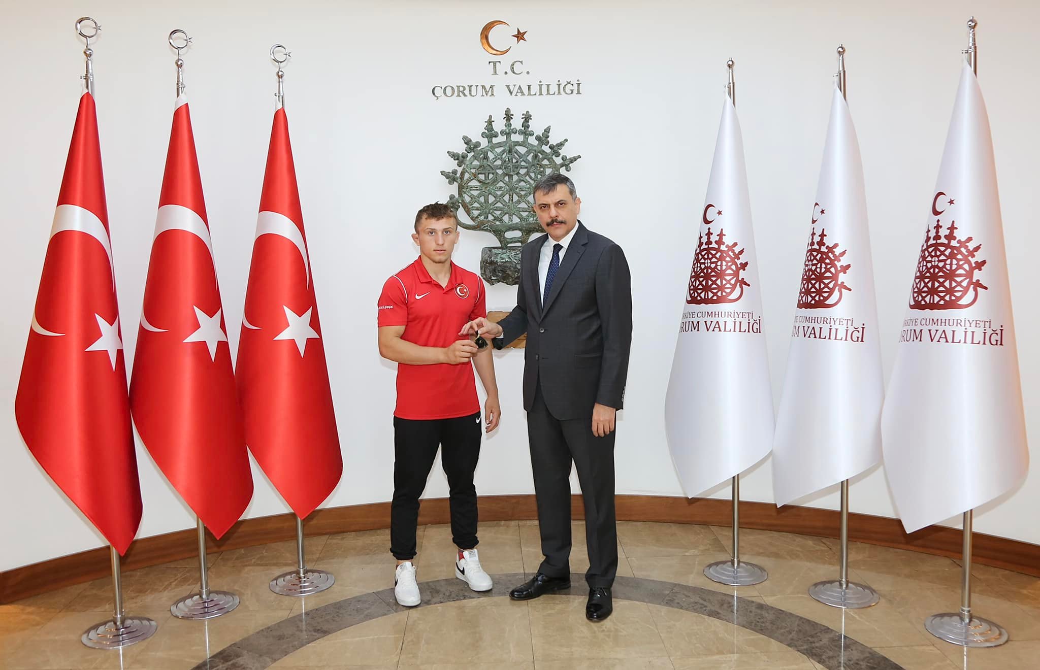 Çorum Valiliğinden yapılan açıklamada; “Valimiz Sayın Mustafa Çiftçi, 14-22 Mayıs tarihlerinde Fransa'nın Normandiya şehrinde Serbest Güreş sitilde 71 kiloda Dünya 2.si olan Ferhat Yiğit’i ve 13-19 Haziran 2022 tarihlerinde Romanya’nın Bükreş şehrinde yapılan Avrupa Güreş şampiyonasında Serbest sitilde 51 kiloda Avrupa 3.sü olan Mustafa Karabuğa’yı makamında kabul ederek tebrik etti” ifadelerine yer verildi.