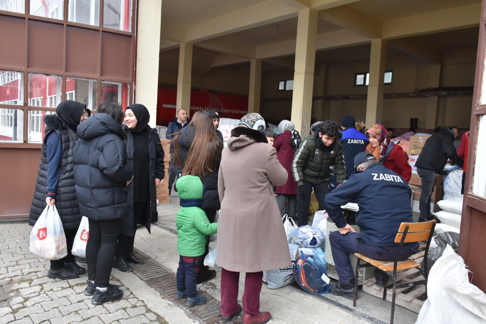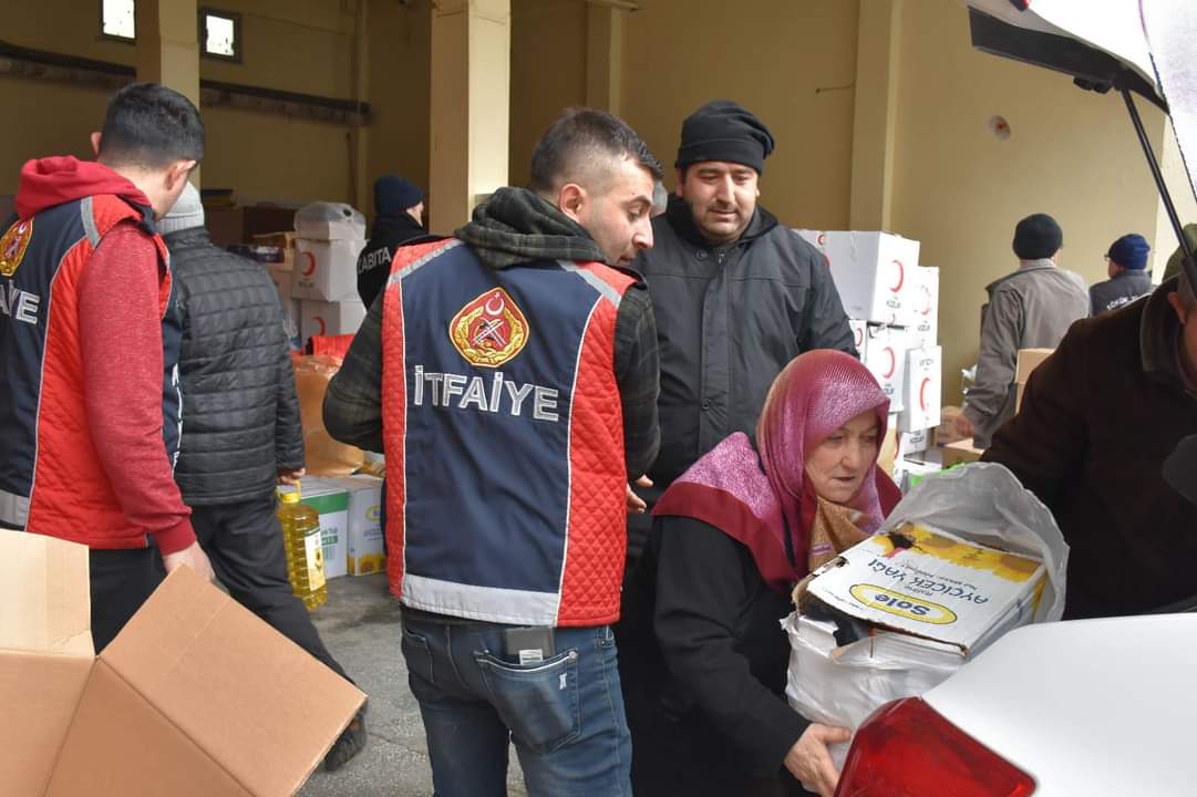 İhtiyaç malzemelerinin İtfaiye Müdürlüğünde toplandığı duyurusunun ardından İskilip halkı hemen harekete geçerek yardım malzemelerini İtfaiyeye ulaştırmaya başladı.