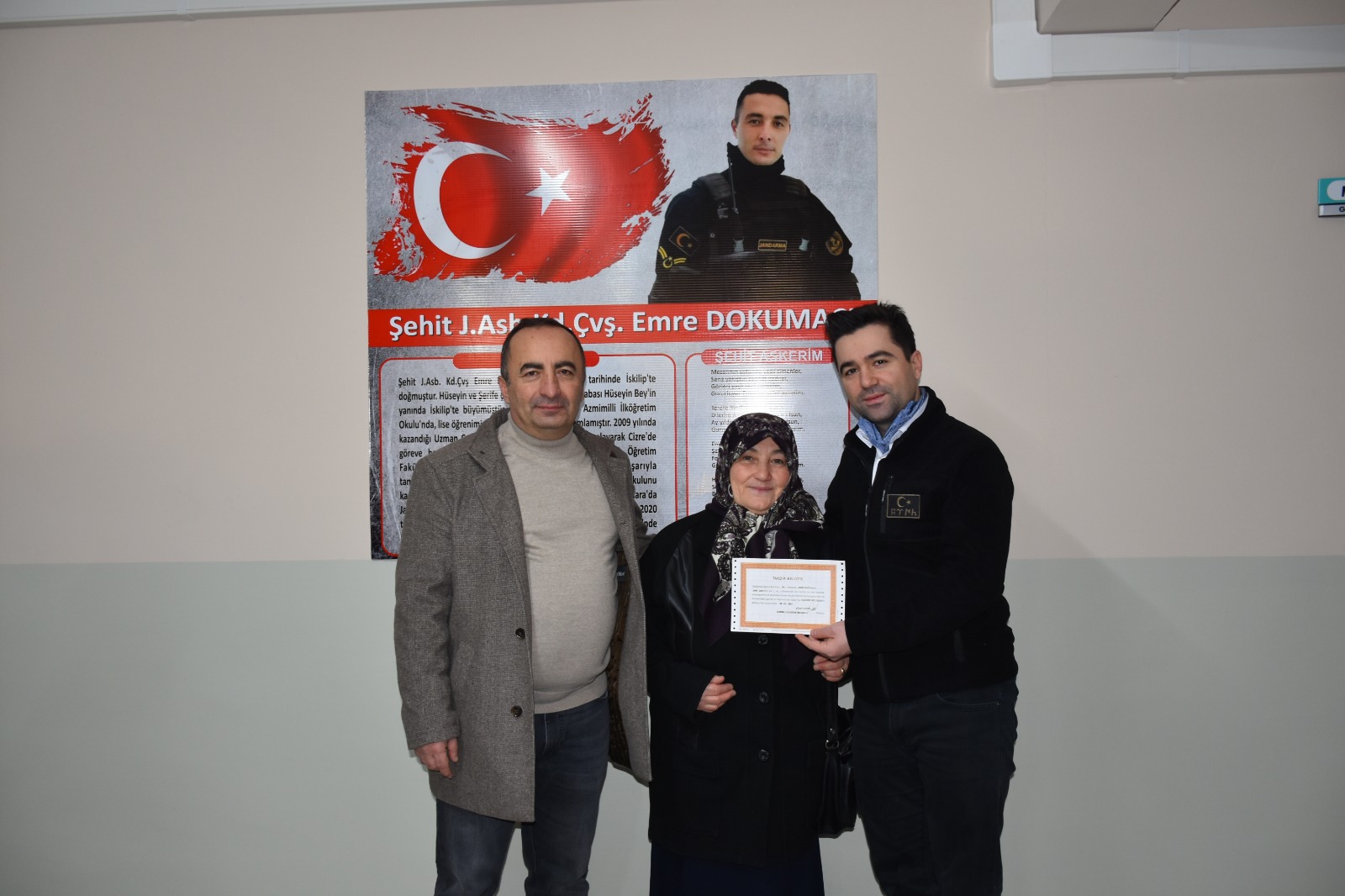 Törende okulda bulunan panoya okulun adının verildiği Şehit Emre Dokumacı’nın İlkokul diploması asıldı. Kaymakam Yunus Emre Vural ve Belediye Başkanı Ali Sülük tarafından öğrencilere karne ile çeşitli hediyeler dağıtıldı.