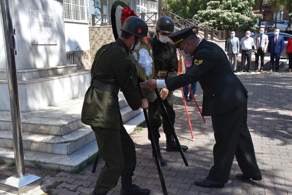 Hükümet Konağı önünde gerçekleştirilen kutlama programı saygı duruşu ve İstiklal Marşımızın okunmasıyla başladı. Kurumlar Atatürk Anıtına çelenklerini sundular.