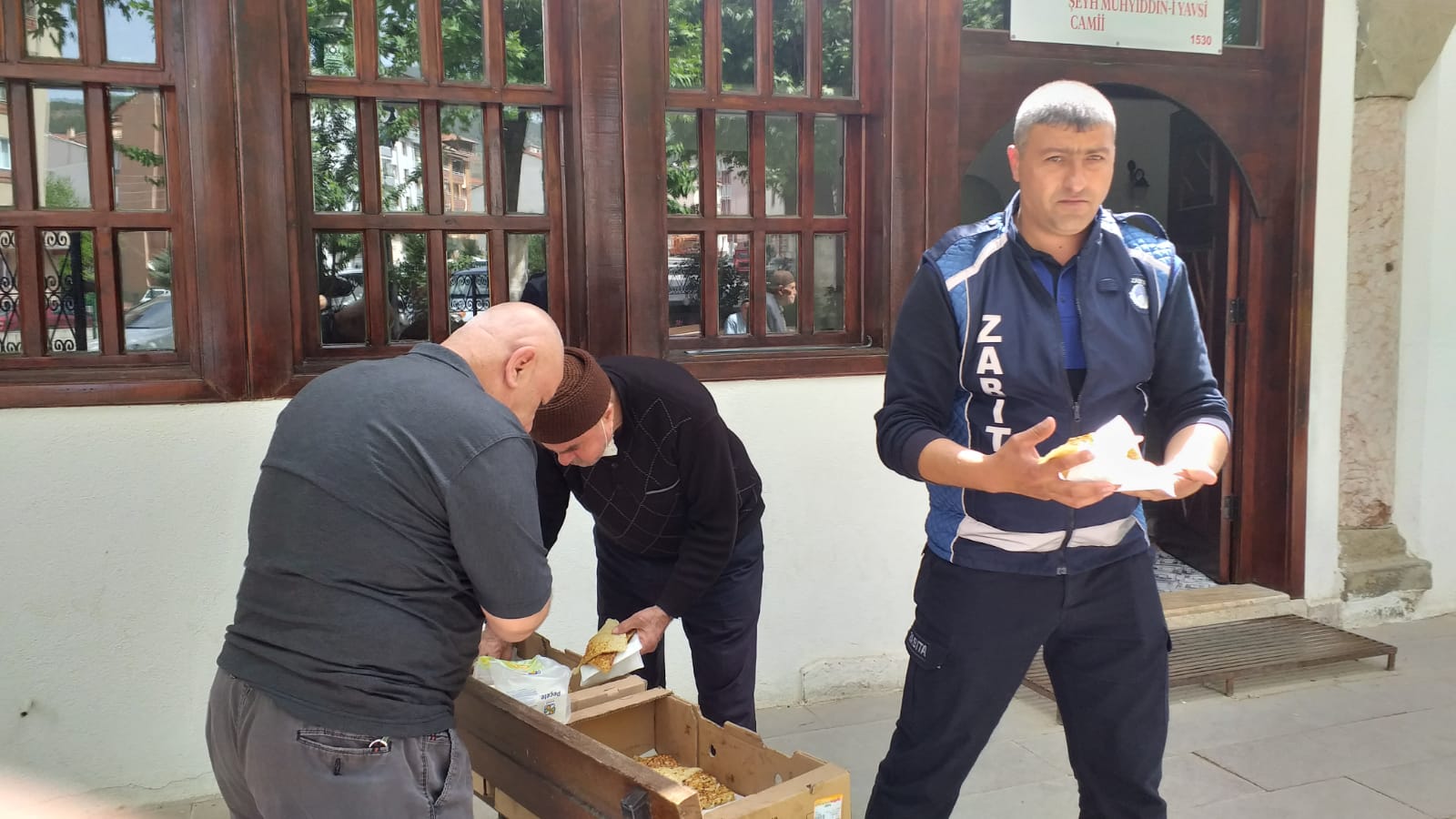 İskilip Belediyesinin organizasyonu ile Cuma namazı çıkışında hanımların evde yaptıkları geleneksel köy çöreği ile mayalı dağıtıldı.
