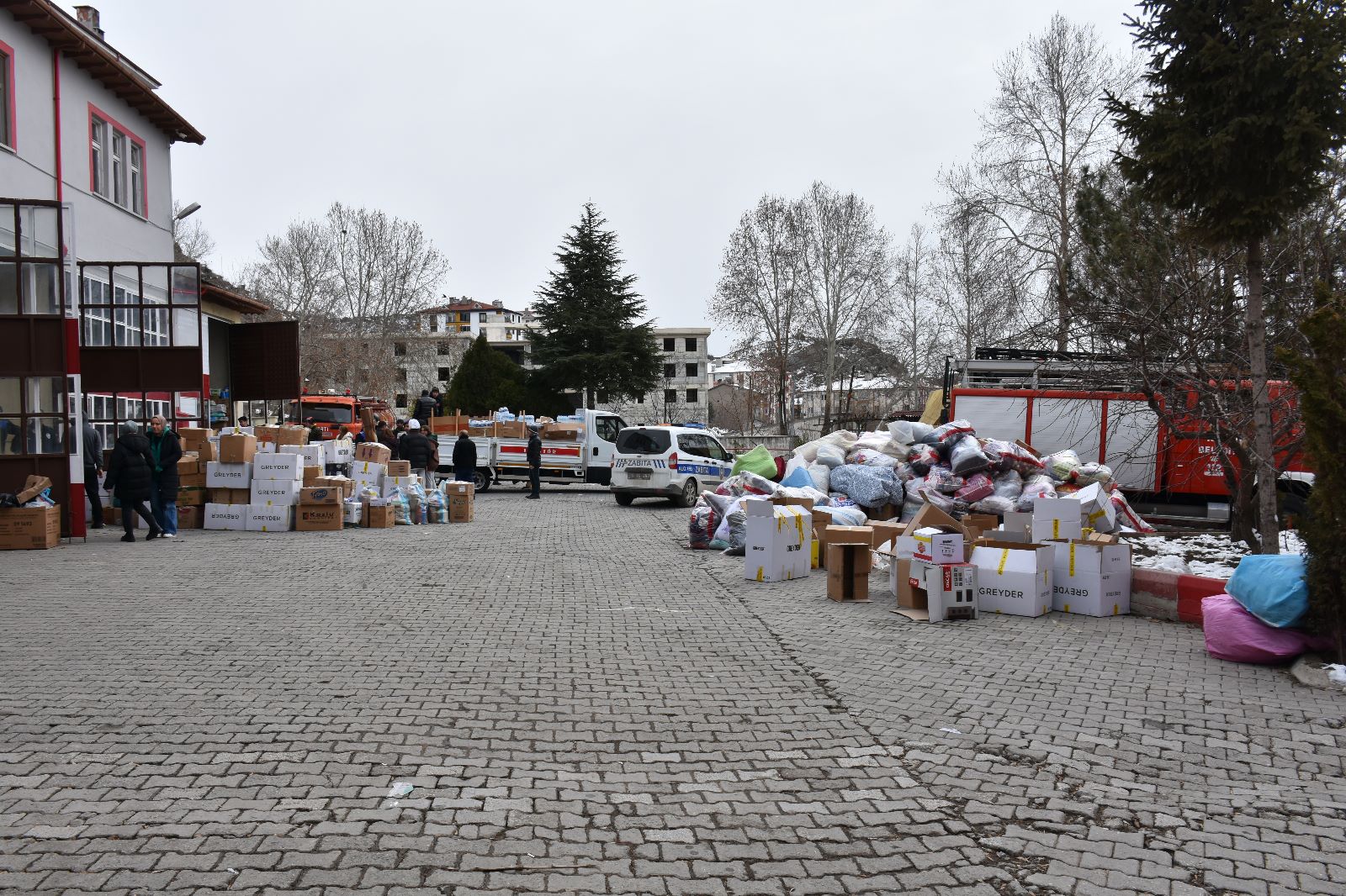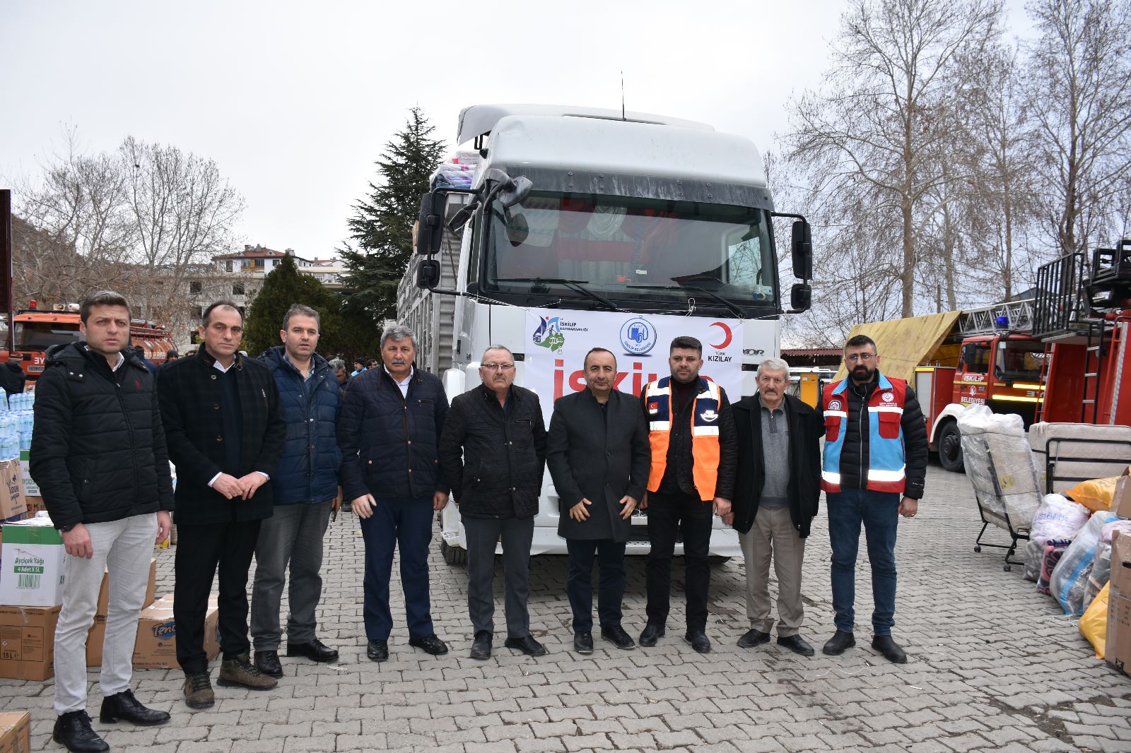 Bugüne kadar toplanan 3 Tır yardım malzemesi ve 1 Kamyonet su, Kaymakamlığımız ve Belediyemiz olarak AFAD koordinesinde deprem bölgesine sevk ettik. Vatandaşlarımız depremden etkilenen kardeşlerimize destek olmak için çok yoğun ilgi gösteriyor.