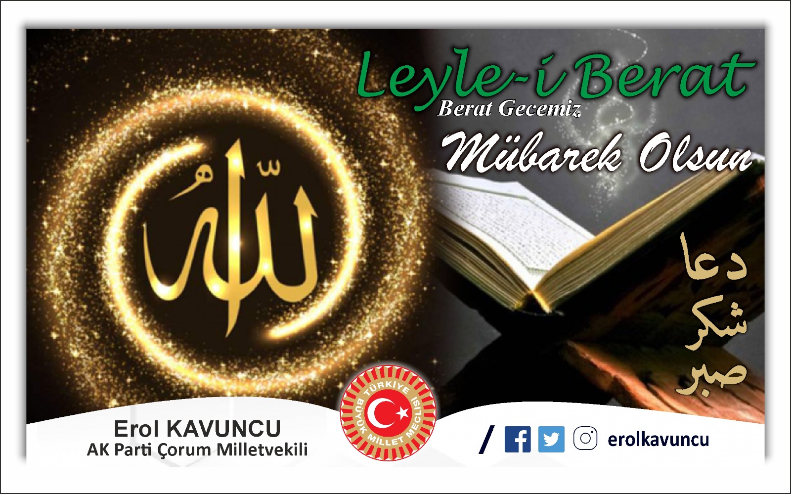 Ak Parti Çorum Milletvekili Erol Kavuncu'nun Berat Kandii mesajı;