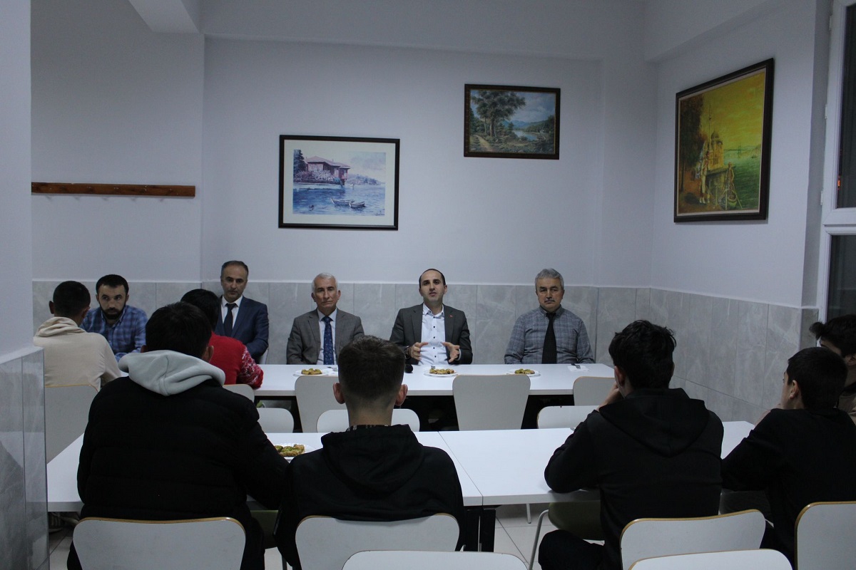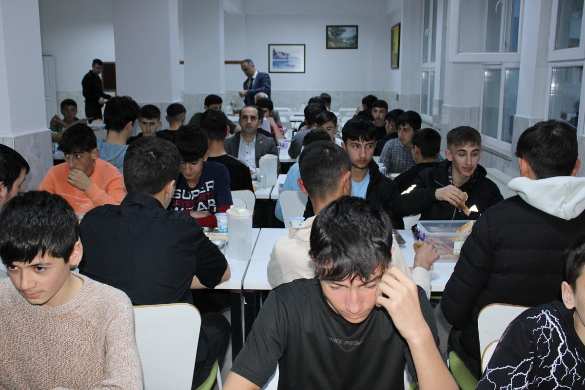 Kaymakam Ramazan Polat, İlçe Milli Eğitim Müdürü Murat Ecer ve Okul Müdürü Hasan Çatma ile birlikte İskilip Anadolu İmam Hatip Lisesi erkek öğrenci yurdunda iftar yemeğine katıldı.