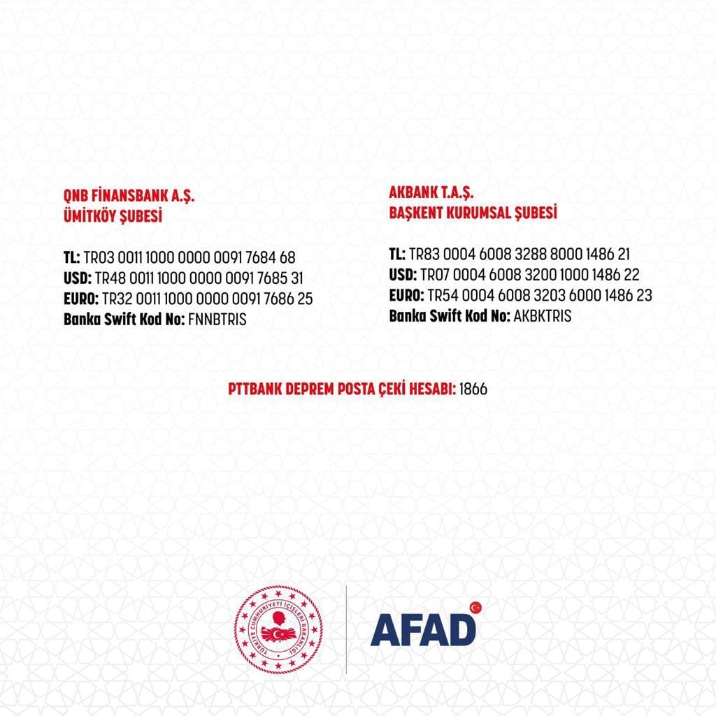 1-Yapılacak nakdi yardımların AFAD’ın resmi banka hesaplarına yapılması,
