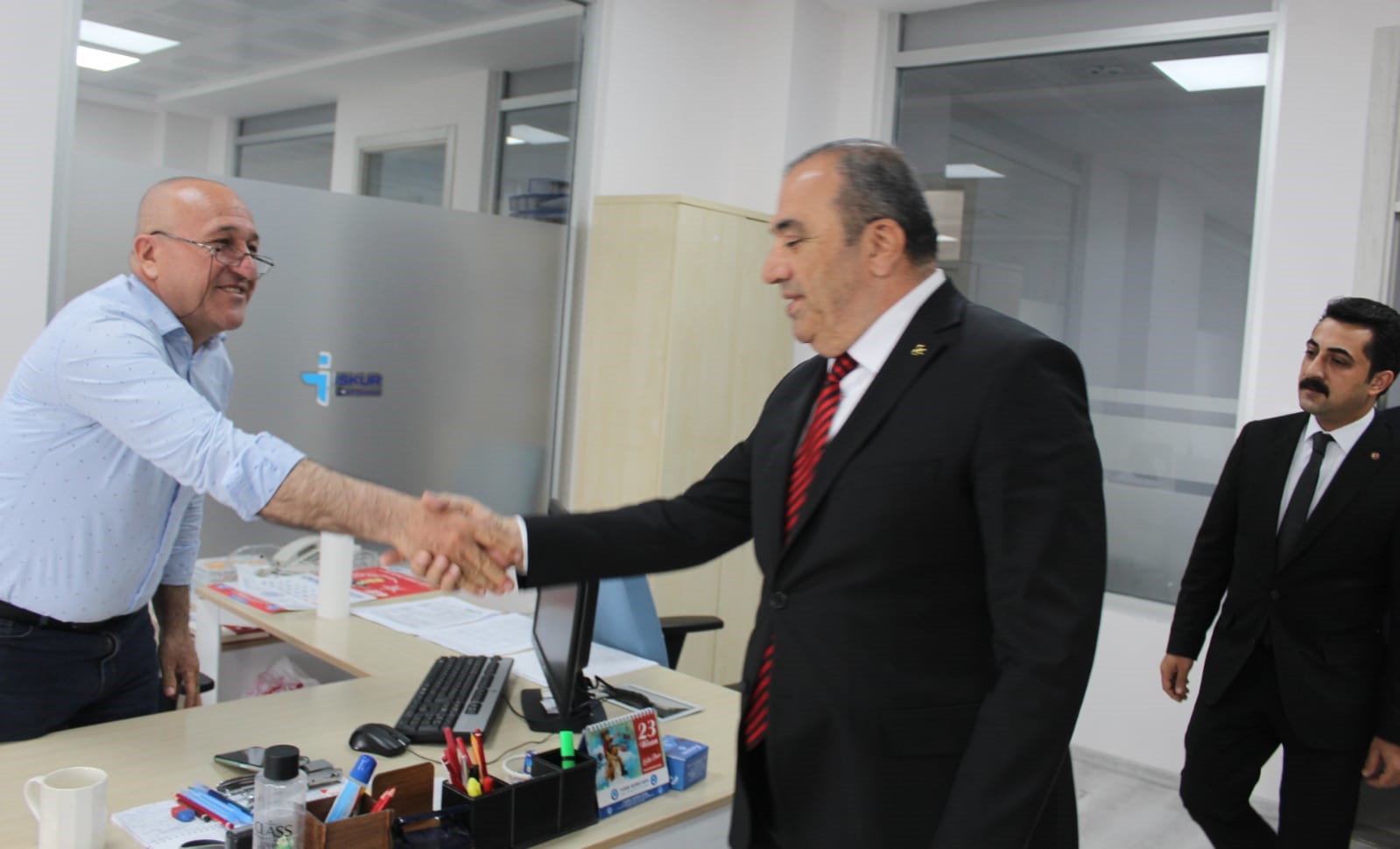 Ülkü Ocakları İl BaÅŸkanı Orhan Tosik ve önceki dönem Belediye meclis Üyesi Ali Beyaz ile birlikte İŞKUR’a giden Vahit Kayrıcı, İl Müdürü Levent Tuzcu ve kurum idarecileri tarafından karşılandı. İl MüdürlüÄŸü’nde görev yapan tüm personellerle tokalaÅŸarak geçmiÅŸ Ramazan Bayramlarını tebrik eden Milletvekili Adayı Kayrıcı, İl Müdürü Levent Tuzcu’dan da müdürlüÄŸünün faaliyetleri hakkında bilgi aldı.