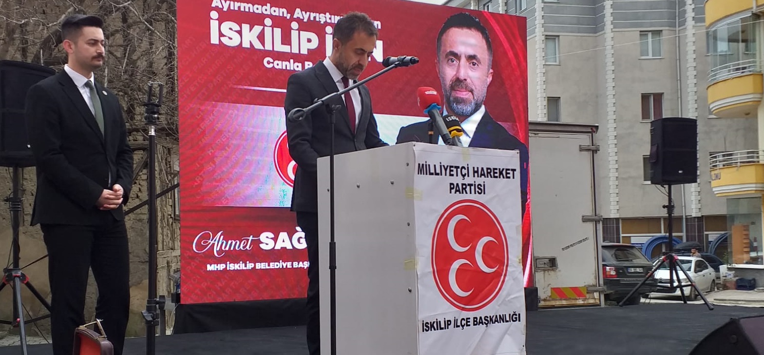 MHP İskilip İlçe BaÅŸkanı Mehmet AktaÅŸ konuÅŸmasında; “31 Mart seçimlerine her zamankinden daha iddialı çalışmaktayız. İlçemizi bölgenin parlayan yıldızı haline getirecek, güçlü projeleri ile çalışkan, azimli ve saÄŸlam adayımız Ahmet SaÄŸlam, İl Genel Meclisi ile Belediye Meclis üyelerimizle huzurlarınızdayız. İlçemiz için canla baÅŸla çalışacağız” dedi.