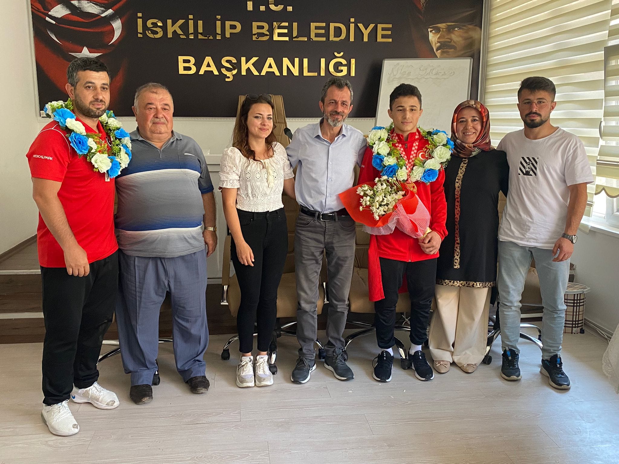 Şampiyon güreşçimiz Belediye önünde Belediye Başkan Vekili Hatun Çam, İskilip Gençlik ve Spor Müdürü Şevket Akkocaoğlu, belediye yetkilileri, ailesi ve çok sayıda İskilipli tarafından karşılandı. Güreşçimiz Enes Kavlu ve hocası Adem Uysal’ın duygulandığı gözlerden kaçmadı.