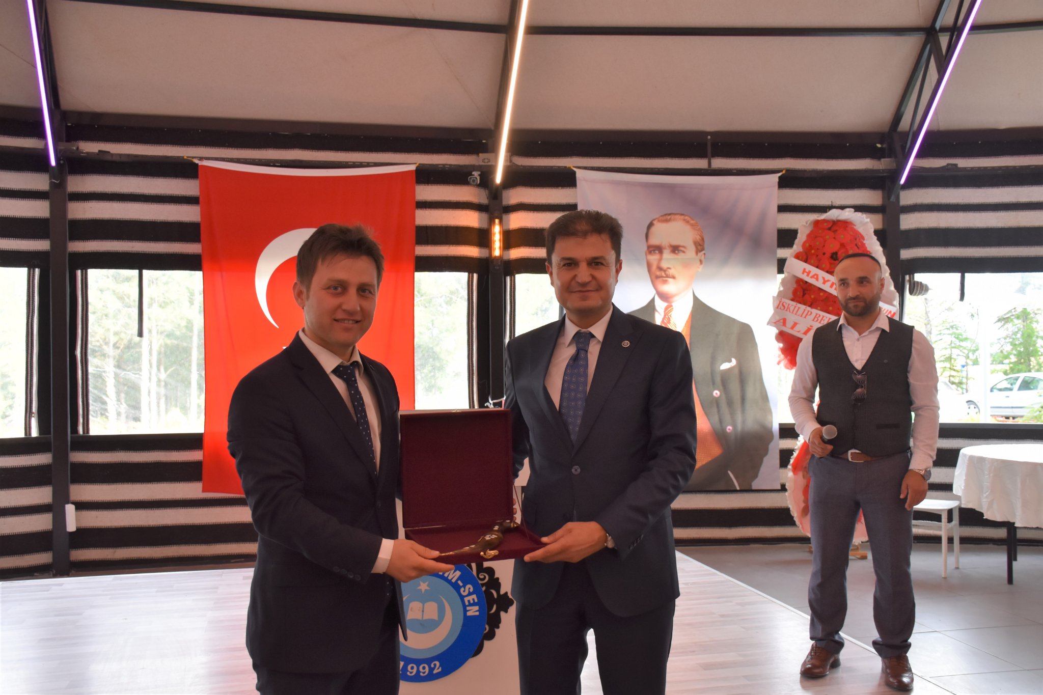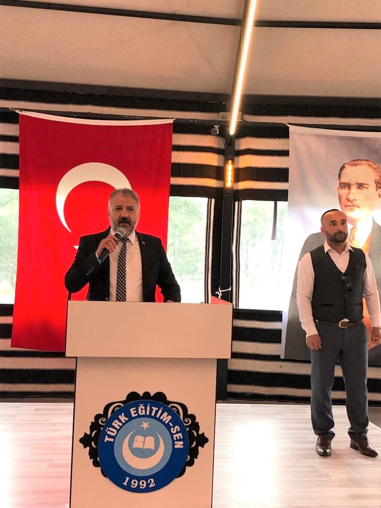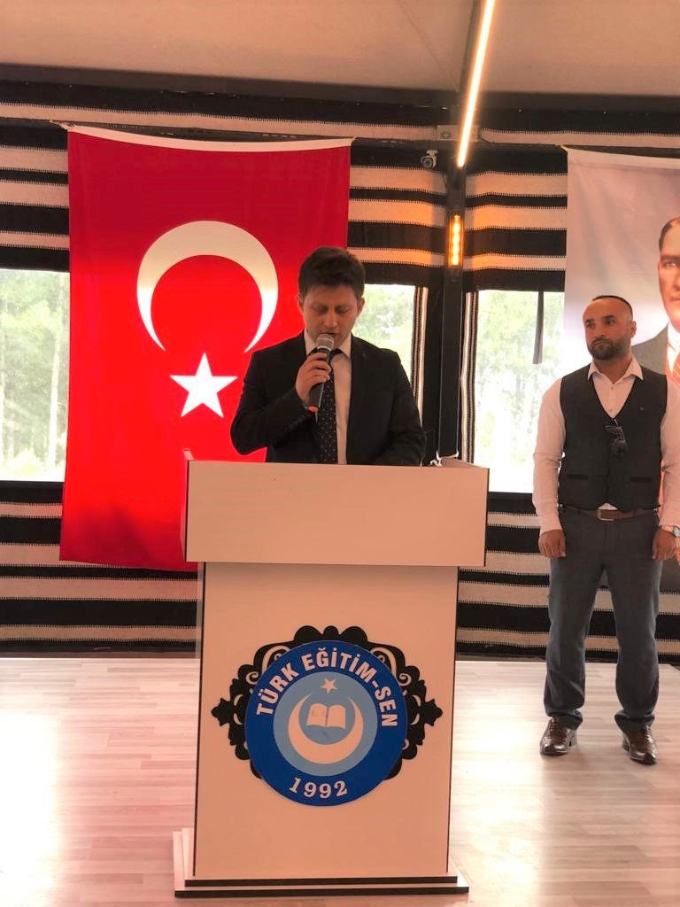 Türk Eğitim Sendika İskilip Temsilcisi Orhan Sağır selamlama konuşmasından sonra, “ Ben ve yönetim kurulundaki arkadaşlarım bize emanet edilen bayrağı görevimiz süresince hep yukarıda dalgalandırmak için ahdettik.