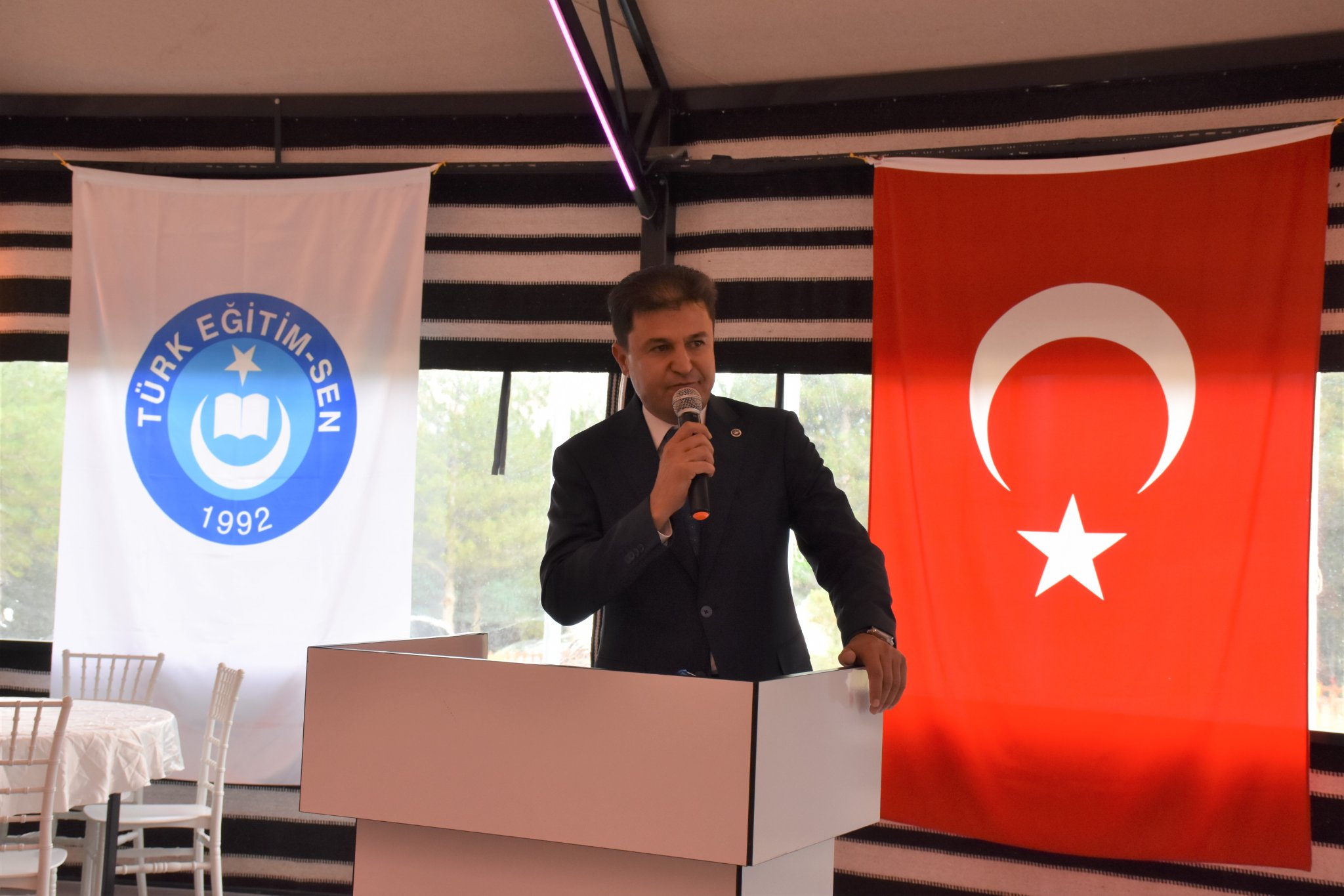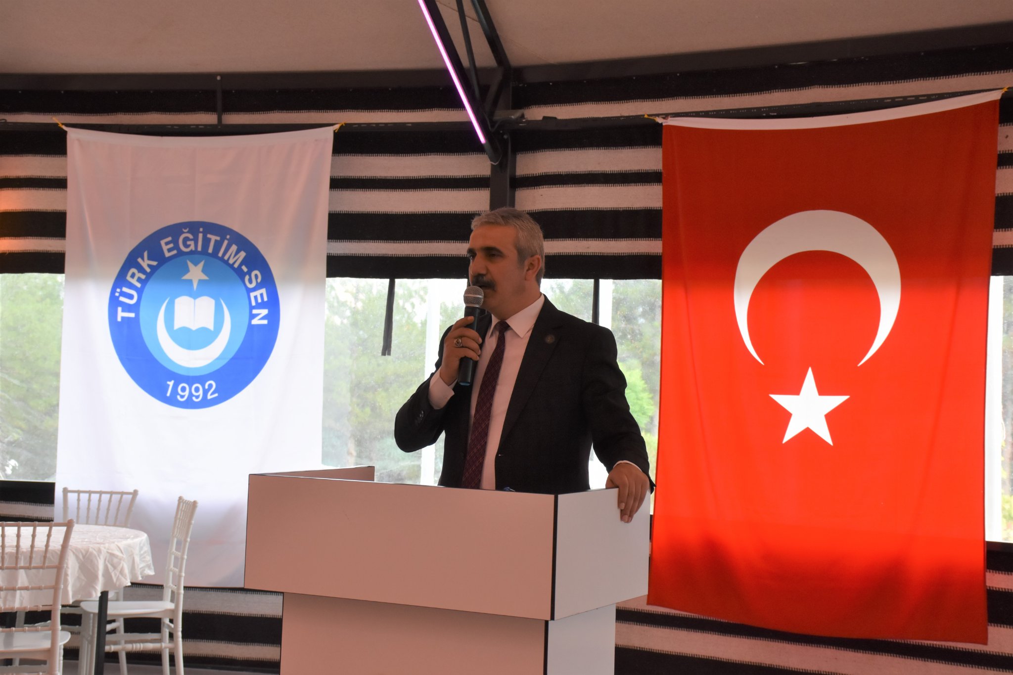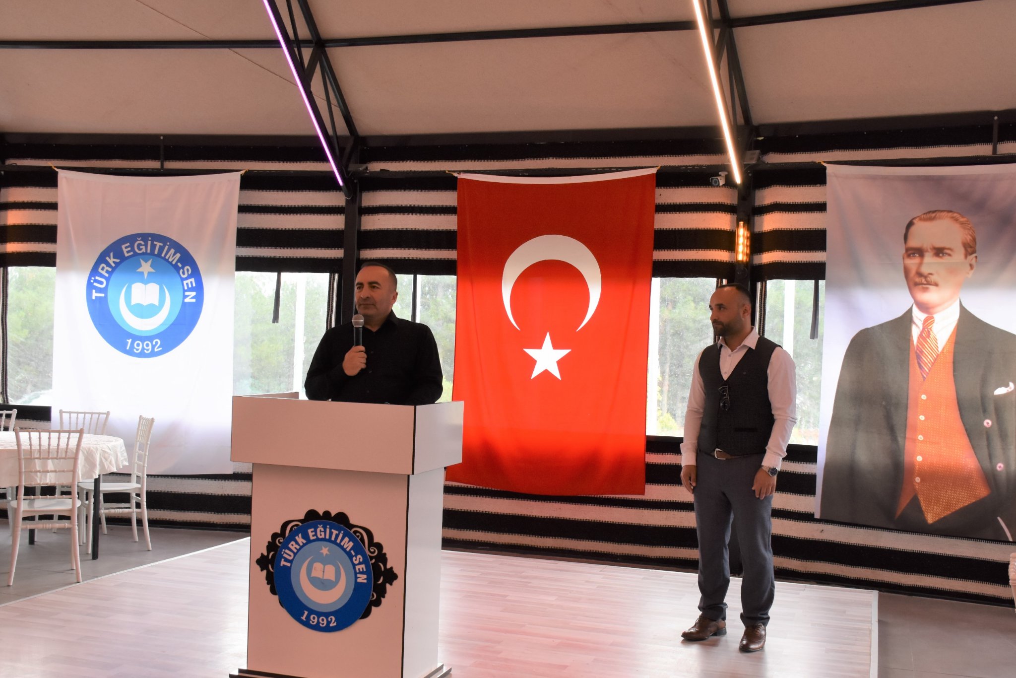 Türk Eğitim Sendika İskilip Temsilcisi Orhan Sağır selamlama konuşmasından sonra, “ Ben ve yönetim kurulundaki arkadaşlarım bize emanet edilen bayrağı görevimiz süresince hep yukarıda dalgalandırmak için ahdettik.