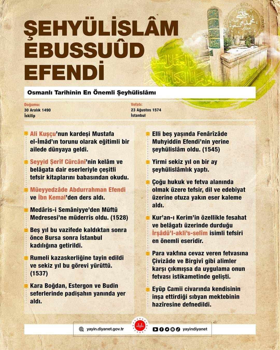 Saat; 14:00’te festival alanında Prof. Dr. Vahit Göktaş ve Doç. Dr. Abdulkadir Dağlar’ın konuşmacı olarak katılacağı Ebussuud Efendi konferansı düzenlenecek.